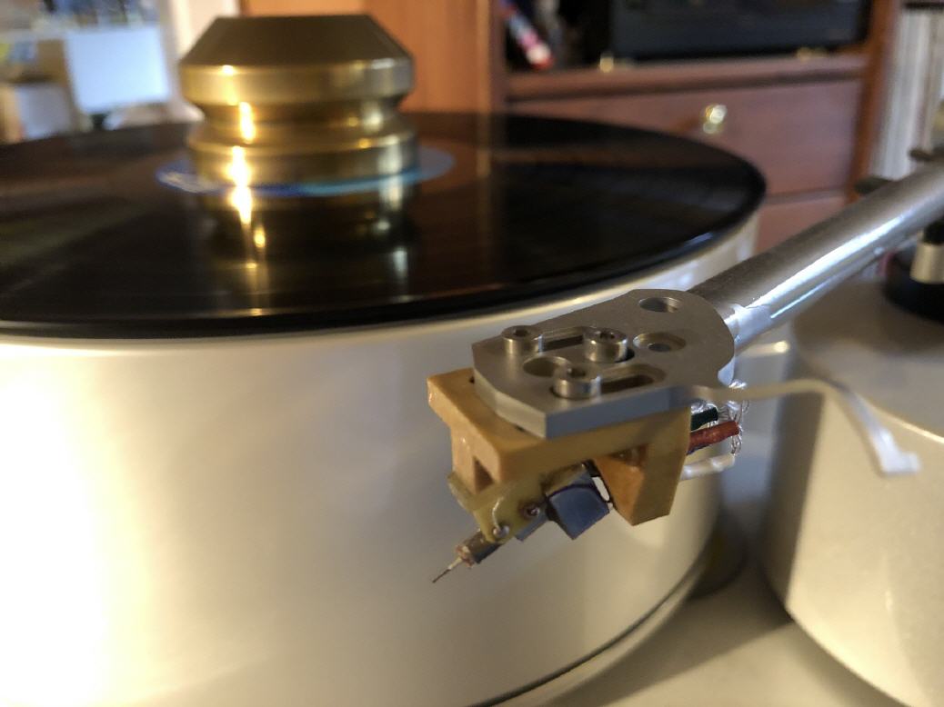 ”Die Quelle ". MC Tonabnehmer an der Grenze des Erreichbaren. Einzelanfertigung. Was bisher nur geahnt werden konnte, wird musikalisches Erlebnis! Gewicht ca.15 Gramm. Ausgangsspannung 0,45 mv. oder 0,25 mv. Abschlußimpedanz 100 Ohm - 180 KOhm. Ausgesuchter Nadelschliff vdH 1, Radius 1 mykro, Auflagekraft 1,5 pond. Übersprechdämpfung mehr als 40 db. Frequenzgang bis über 60.000 Hz.